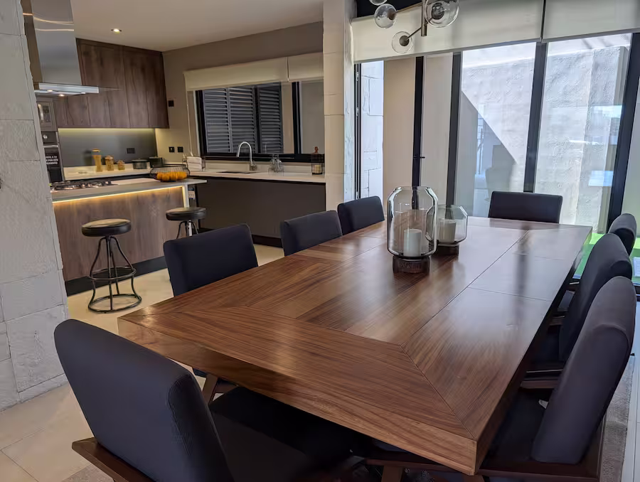 A diferencia de otras opciones en la zona, esta propiedad destaca por integrar espacios amplios, acabados premium y equipamiento de alto nivel. Su cocina de autor incluye cubiertas de cuarzo, torre de hornos y lavavajillas, mientras que los baños incorporan cubiertas de mármol travertino y detalles decorativos con piedra Galarza.